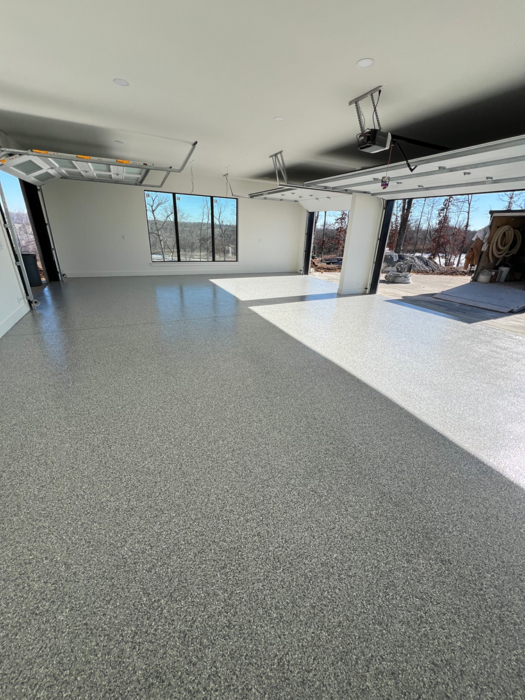 Homeowners across Bentonville, Rogers, Fayetteville, and Springdale can browse color and flake combinations before installation day to match the finish to their home's style.